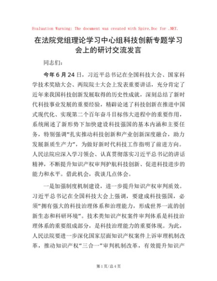 / 在法院党组理论学习中心组科技创新专题学习会上的研讨交流发言