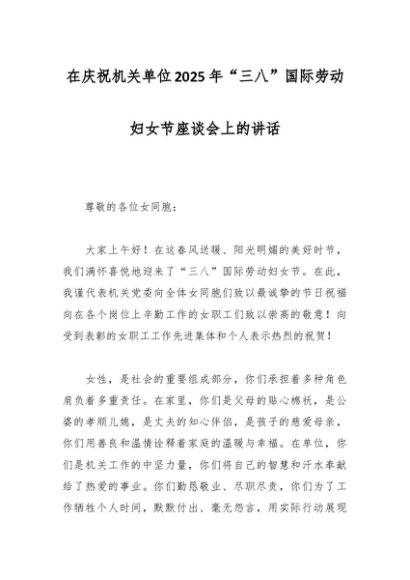/ 在庆祝机关单位2025年“三八”国际劳动妇女节座谈会上的讲话