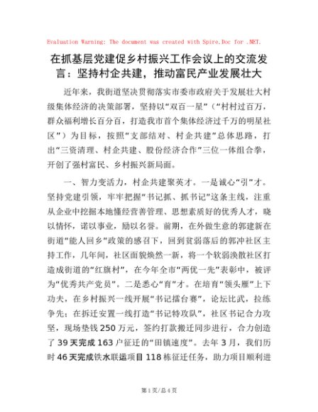 / 在抓基层党建促乡村振兴工作会议上的交流发言:坚持村企共建,推动富民产业发展壮大