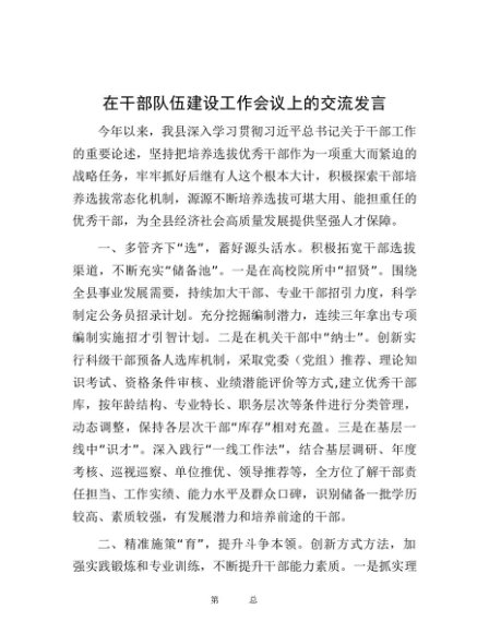 / 在干部队伍建设工作会议上的交流发言
