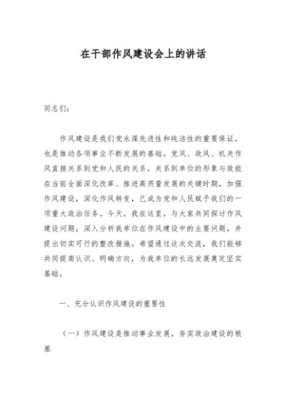 / 在干部作风建设会上的讲话