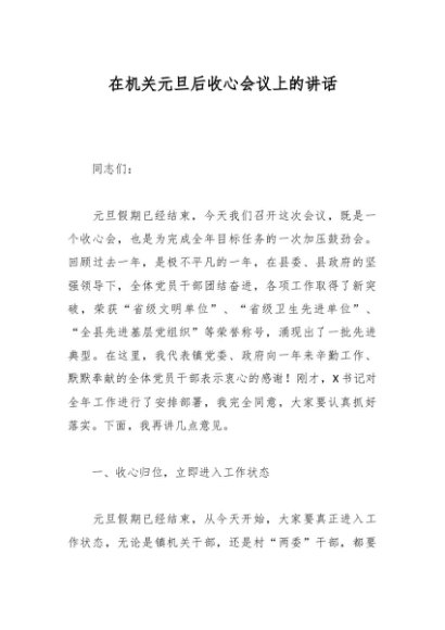 / 在机关元旦后收心会议上的讲话