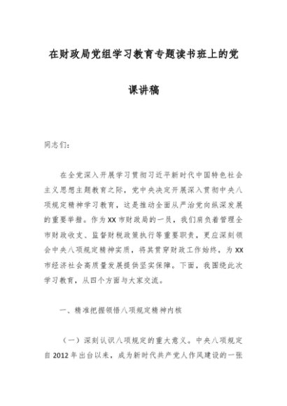 / 在财政局党组学习教育专题读书班上的党课讲稿