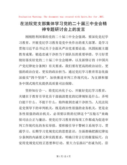 / 在法院党支部集体学习党的二十届三中全会精神专题研讨会上的发言