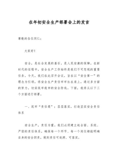 / 在年初安全生产部署会上的发言