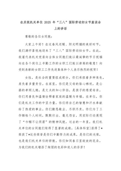 / 在庆祝机关单位 2025 年“三八”国际劳动妇女节座谈会上的讲话