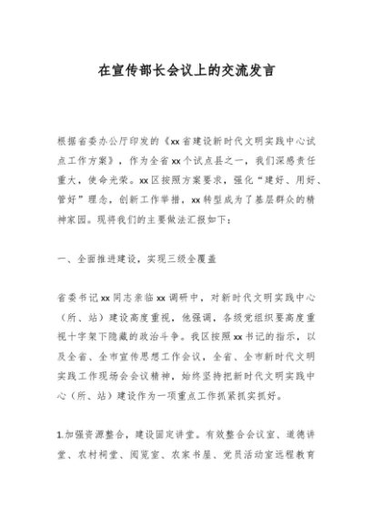 / 在宣传部长会议上的交流发言