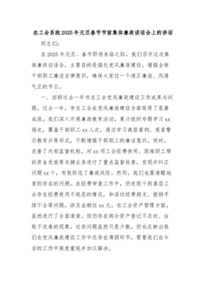 / 在工会系统2025年元旦春节节前集体廉政谈话会上的讲话