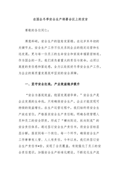 / 在国企冬季安全生产部署会议上的发言