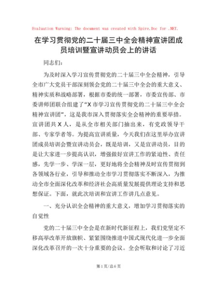 / 在学习贯彻党的二十届三中全会精神宣讲团成员培训暨宣讲动员会上的讲话