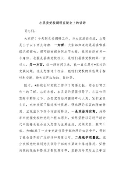 / 在县委党校调研座谈会上的讲话