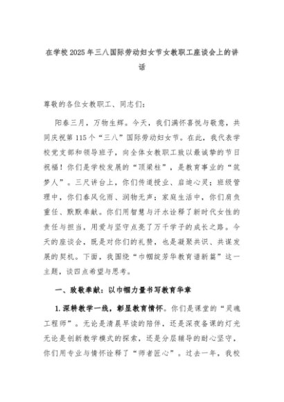 / 在学校2025年三八国际劳动妇女节女教职工座谈会上的讲话