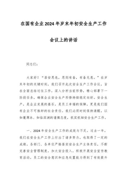 / 在国有企业2024年岁末年初安全生产工作会议上的讲话
