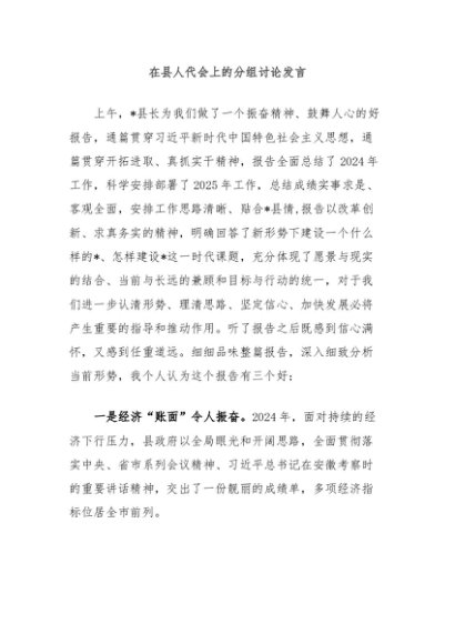 / 在县人代会上的分组讨论发言