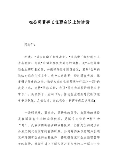 / 在公司董事长任职会议上的讲话