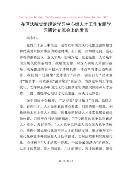/ 在区法院党组理论学习中心组人才工作专题学习研讨交流会上的发言