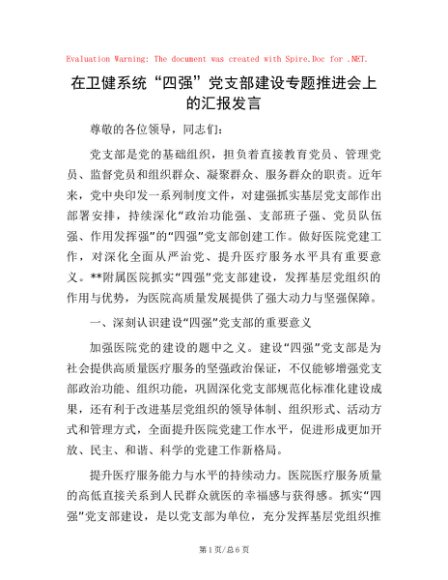/ 在卫健系统“四强”党支部建设专题推进会上的汇报发言