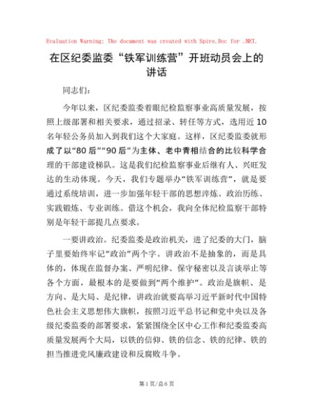 / 在区纪委监委“铁军训练营”开班动员会上的讲话