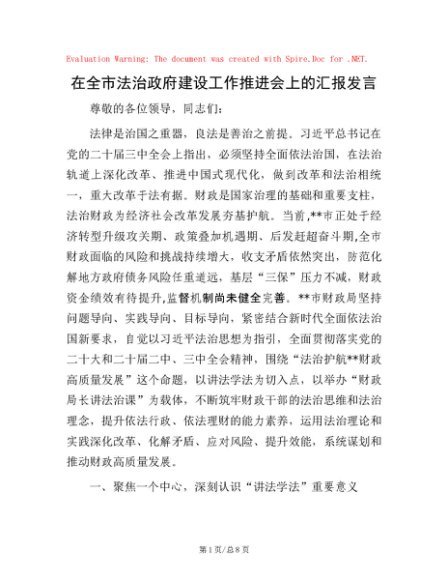 / 在全市法治政府建设工作推进会上的汇报发言