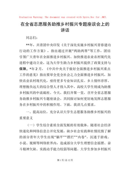 / 在全省志愿服务助推乡村振兴专题座谈会上的讲话