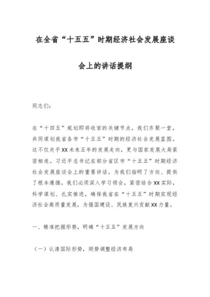 / 在全省“十五五”时期经济社会发展座谈会上的讲话提纲