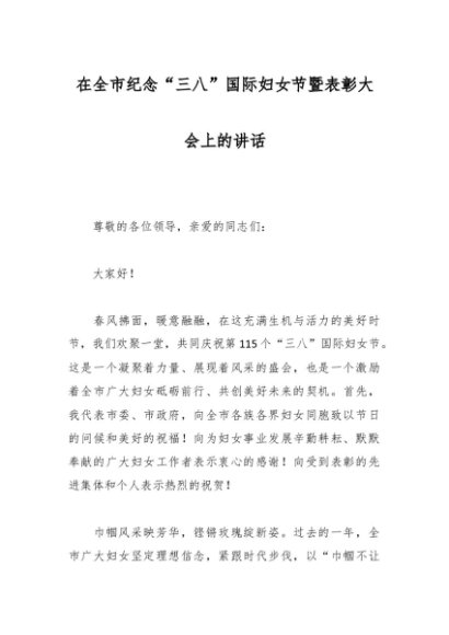 / 在全市纪念“三八”国际妇女节暨表彰大会上的讲话