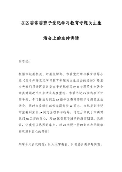 / 在区委常委班子党纪学习教育专题民主生活会上的主持讲话
