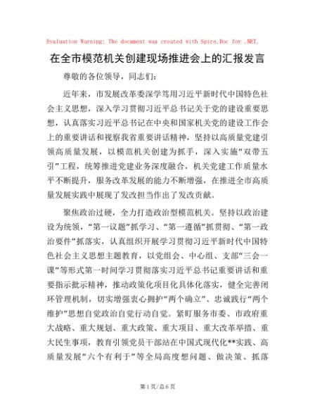 / 在全市模范机关创建现场推进会上的汇报发言