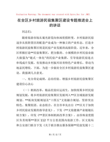 / 在全区乡村旅游民宿集聚区建设专题推进会上的讲话