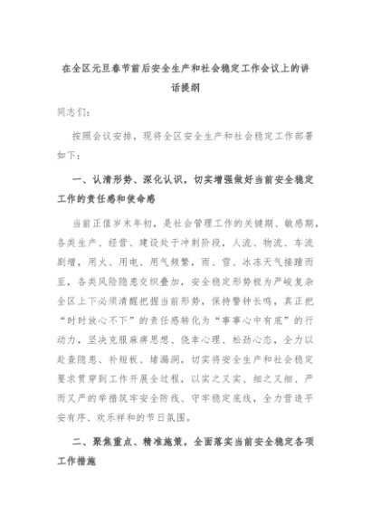 / 在全区元旦春节前后安全生产和社会稳定工作会议上的讲话提纲