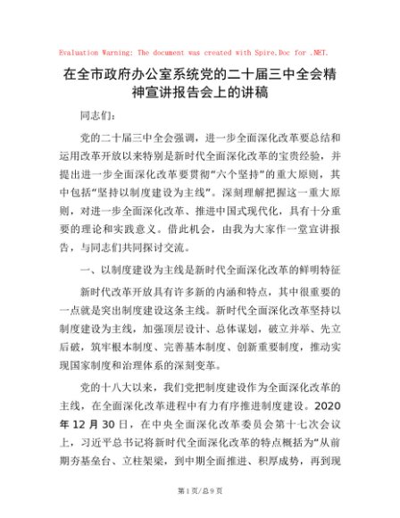 / 在全市政府办公室系统党的二十届三中全会精神宣讲报告会上的讲稿