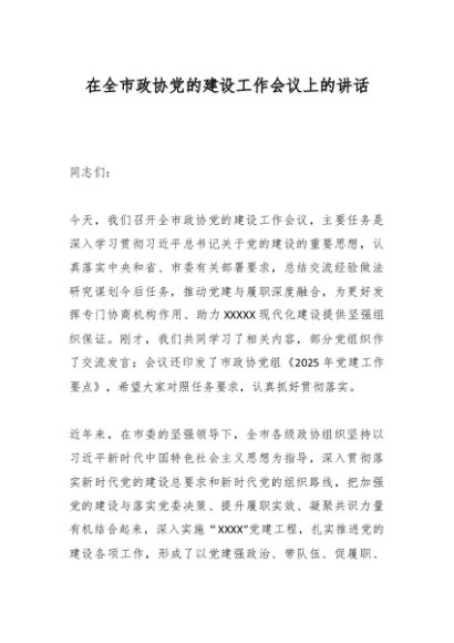 / 在全市政协党的建设工作会议上的讲话