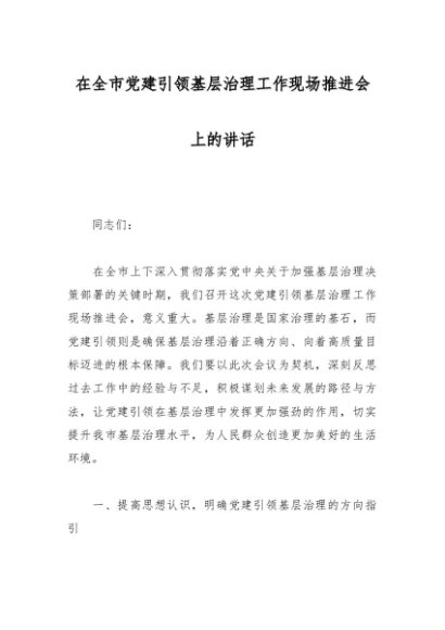 / 在全市党建引领基层治理工作现场推进会上的讲话