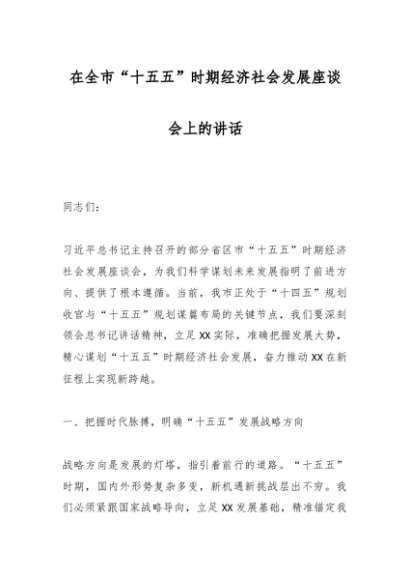 / 在全市“十五五”时期经济社会发展座谈会上的讲话