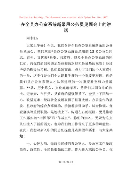 / 在全县办公室系统新录用公务员见面会上的讲话