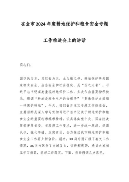 / 在全市2024年度耕地保护和粮食安全专题工作推进会上的讲话
