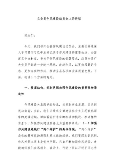 / 在全县作风建设动员会上的讲话