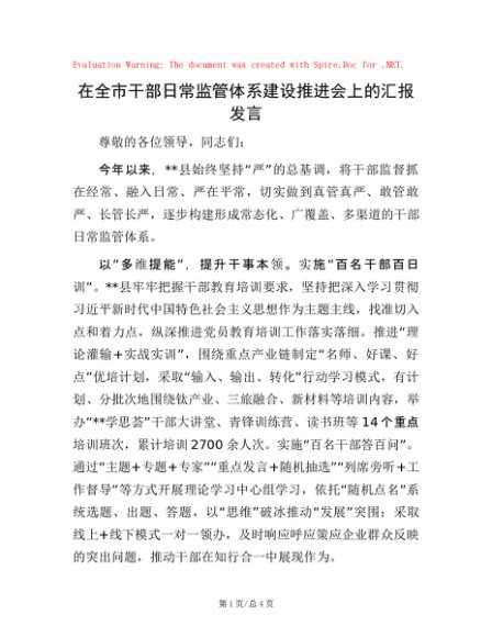 / 在全市干部日常监管体系建设推进会上的汇报发言