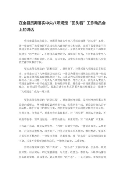 / 在全县贯彻落实中央八项规定“回头看”工作动员会上的讲话