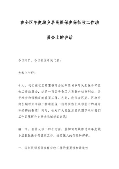 / 在全区年度城乡居民医保参保征收工作动员会上的讲话
