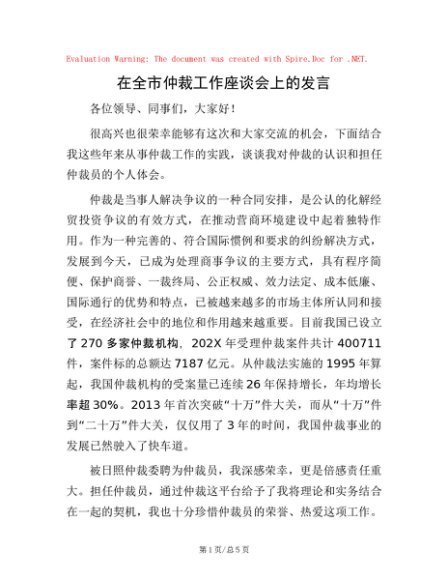 / 在全市仲裁工作座谈会上的发言