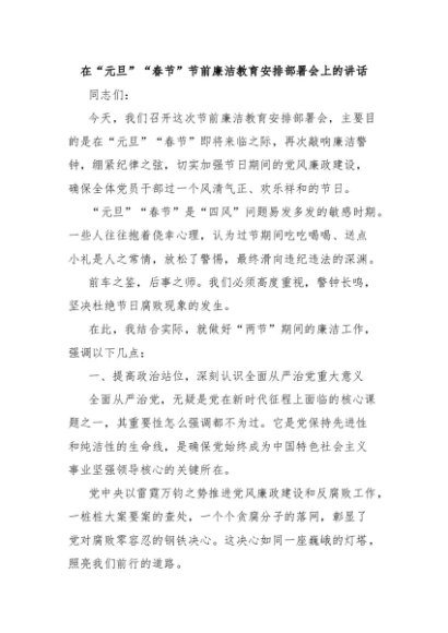 / 在“元旦”“春节”节前廉洁教育安排部署会上的讲话