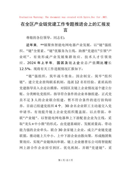 / 在全区产业链党建工作专题推进会上的汇报发言
