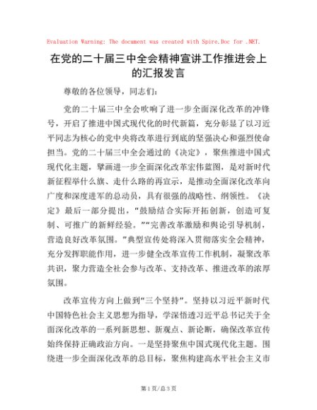 / 在党的二十届三中全会精神宣讲工作推进会上的汇报发言