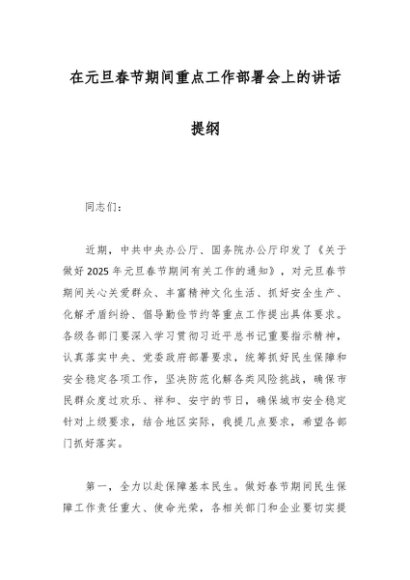 / 在元旦春节期间重点工作部署会上的讲话提纲