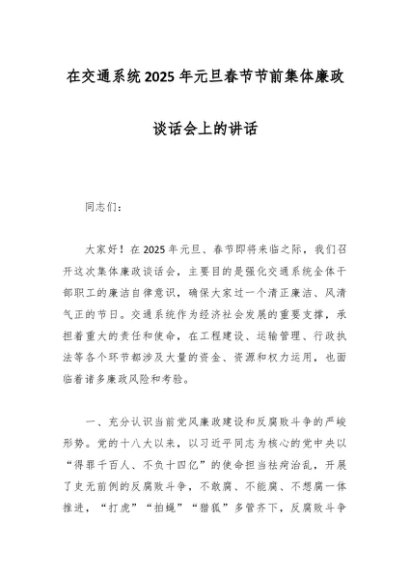 / 在交通系统2025年元旦春节节前集体廉政谈话会上的讲话