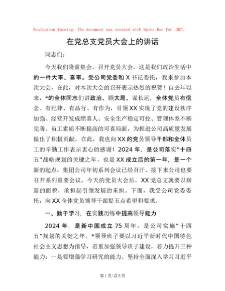 / 在党总支党员大会上的讲话