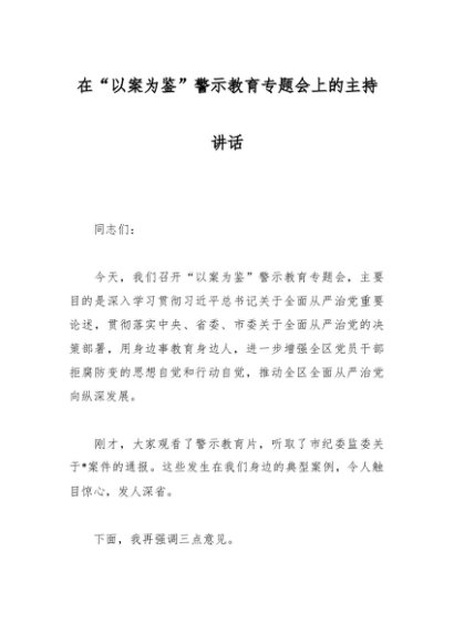 / 在“以案为鉴”警示教育专题会上的主持讲话