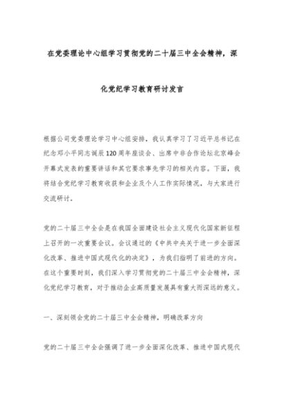 / 在党委理论中心组学习贯彻党的二十届三中全会精神,深化党纪学习教育研讨发言