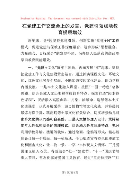 / 在党建工作交流会上的发言:党建引领赋能教育提质增效